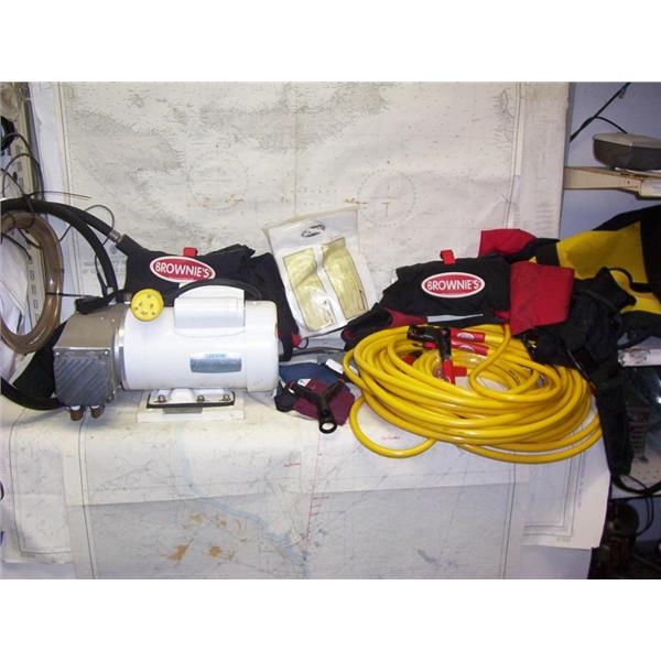 Boaters’ Resale Shop of TX 2205 1454.32 BROWNIE'S E250 DIVE AIR KIT FOR 2 DIVERS * KIT INCLUDES: LEESON AIR COMPRESSOR MODEL MCK17FK45C with 20 AMP 250 VOLT AC PLUG, HOSES, CONNECTORS, TWO WORK BELTS, WEIGHT BAGS, STORAGE BAG & OWNERS' MANUAL * LOCAL PICK-UP OR FREIGHT SHIPPING ONLY (CONTACT US FOR ASSISTANCE) * SEE ALL 7 PHOTOS * SOLD AS PICTURED * ITEM WAS PRE-OWNED, USED, IN FAIR PHYSICAL CONDITION AND APPEARS TO BE OPERATING PROPERLY BUT HAS NOT BEEN TESTED FURTHER