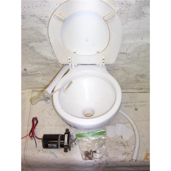 Boaters’ Resale Shop of TX 2206 0745.01 JABSCO ELECTRIC MARINE HEAD COMPONENTS * 12 VOLT DC MACERATOR MOTOR 74001-2460, HOSE & MOUNTING HARDWARE INCLUDED * APPROX. TOILET DIMENSIONS: 14" H x 14" W x 16" D * SEE ALL 7 PHOTOS * SOLD AS PICTURED * ITEM WAS PRE-OWNED, USED, IN FAIR PHYSICAL CONDITION AND MOTOR POWERS UP BUT HAS NOT BEEN TESTED FURTHER