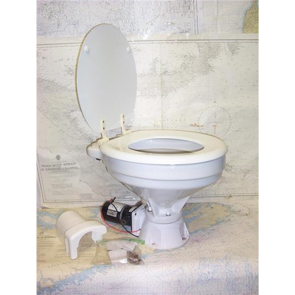 Boaters’ Resale Shop of TX 2207 2774.01 JABSCO 37010-SERIES ELECTRIC MARINE HEAD with MOUNTING HARDWARE & MANUAL * 12 VOLTS DC * COMPACT SIZE 37010-0090 * PUMP COVER & MOUNTING HARDWARE INCLUDED * APPROX. OVERALL DIMENSIONS: 15" H x 15" W x 18" D * SEE ALL 7 PHOTOS * SOLD AS PICTURED * ITEM WAS PRE-OWNED, USED, IN FAIR PHYSICAL CONDITION AND APPEARS TO BE OPERATING PROPERLY, POWERS UP AND PUMPS BUT HAS NOT BEEN TESTED FURTHER