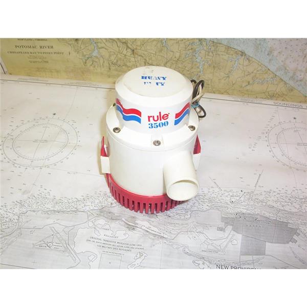 Boaters’ Resale Shop of TX 2212 3125.22 RULE 3500 GPH HEAVY DUTY MARINE 12 VOLT BILGE PUMP * SEE ALL 4 PHOTOS * SOLD AS PICTURED * ITEM WAS PRE-OWNED, USED, IN FAIRLY GOOD PHYSICAL CONDITION AND APPEARS TO BE OPERATING PROPERLY, POWERS UP AND SUCTION IS PRESENT BUT HAS NOT BEEN TESTED FURTHER