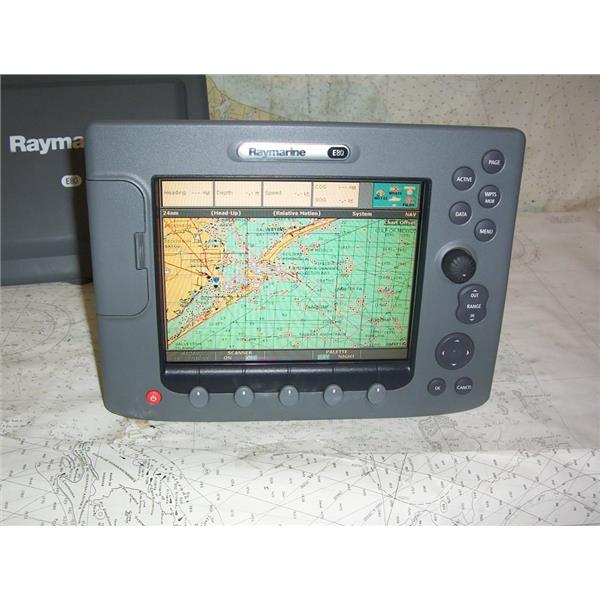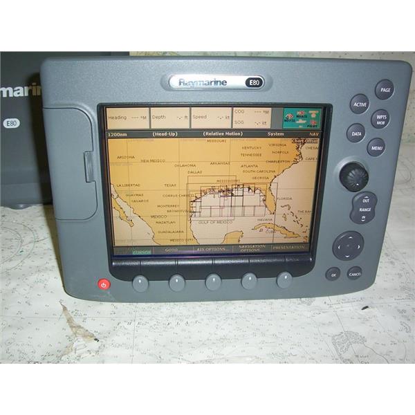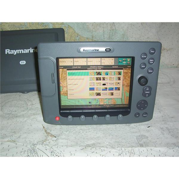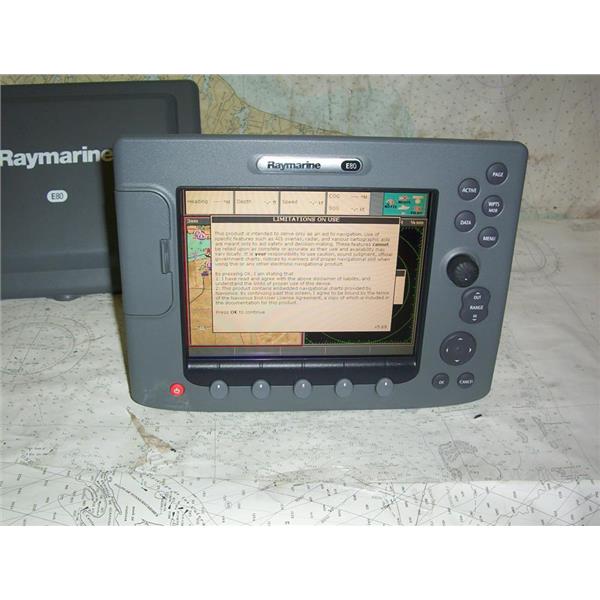 Boaters’ Resale Shop of TX 2301 2177.02 RAYMARINE CLASSIC E80 NAV DISPLAY E02011 with SUNCOVER ONLY * RAYMARINE CLASSIC E80 MULTI-FUNCTION NAVIGATION 8.4" DISPLAY * SOFTWARE VERSION: 5.69 * NOTHING ELSE IS INCLUDED * SEE ALL 7 PHOTOS * POWER CABLE NOT INCLUDED (FOR TESTING ONLY) * ITEM WAS PRE-OWNED, USED, IN FAIRLY GOOD PHYSICAL CONDITION AND APPEARS TO BE OPERATING PROPERLY, POWERS UP, CONTROLS WORK, READS & DISPLAYS CHART CARD DATA(NOT INCLUDED) BUT HAS NOT BEEN TESTED FURTHER