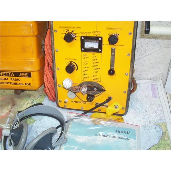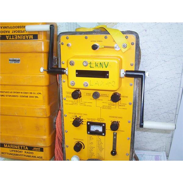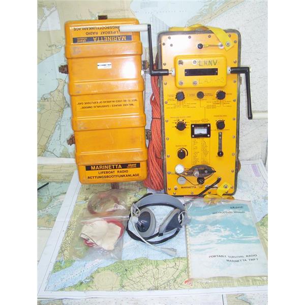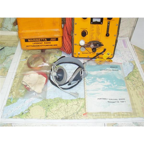 Boaters’ Resale Shop of TX 2302 5147.01 MARINETTA skanti TPR1 SURVIVAL RADIO * Skanti Marinetta TRP1 survival radio * WIRED HEADSET, ANTENNA, CRANK HANDLES, MANUAL & HARD CASE * VINTAGE & UNTESTED LIFEBOAT RADIO ASSEMBLY * APPROX. WEIGHT: 40 LBS. * APPROX. OVERALL DIMENSIONS: 10" W x 11" D x 23" L * SEE ALL 8 PHOTOS * SOLD AS PICTURED * ITEM WAS PRE-OWNED, USED, VINTAGE & UNTESTED BUT DOES MAKE NOISE IN HEADSET WHEN HANDLES ARE TURNED BUT HAS NOT BEEN TESTED FURTHER