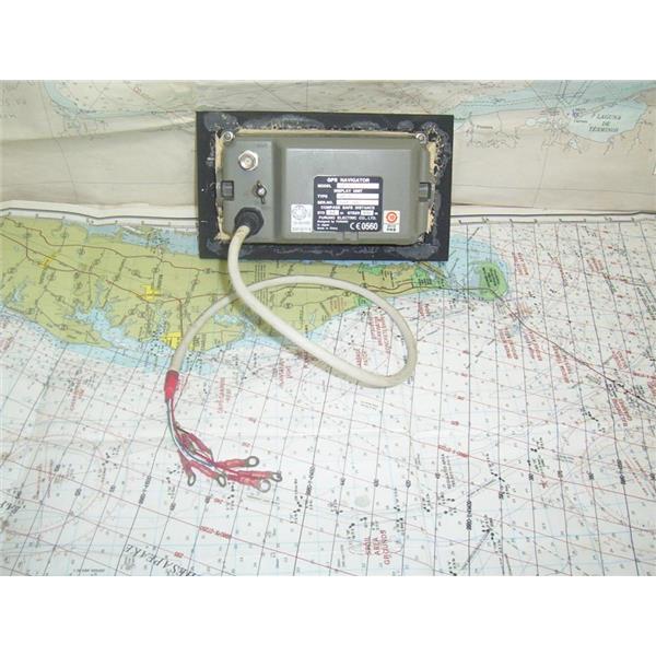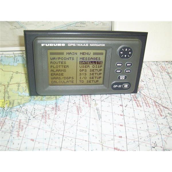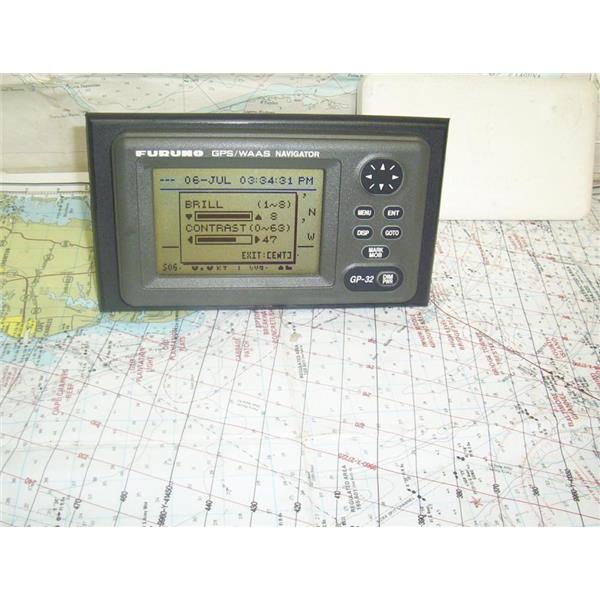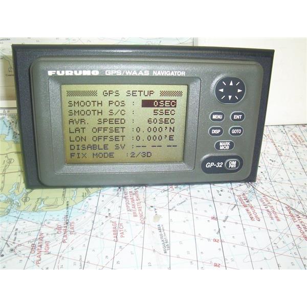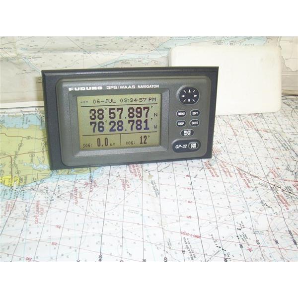 Boaters’ Resale Shop of TX 2307 0151.07 FURUNO GP-32 GPS NAVIGATOR DISPLAY with 24" POWER/IN & OUT CABLE & SUNCOVER ONLY * ANTENNA NOT INCLUDED * SEE ALL 6 PHOTOS * SOLD AS PICTURED * ITEM WAS PRE-OWNED, USED, FLUSH MOUNTED ON TO A .25" x 4.5" x 8" PIECE OF BLACK STARBOARD with SEALANT, IN FAIRLY GOOD PHYSICAL CONDITION AND APPEARS TO BE OPERATING PROPERLY, POWERS UP, CONTROLS WORK BUT HAS NOT BEEN TESTED FURTHER