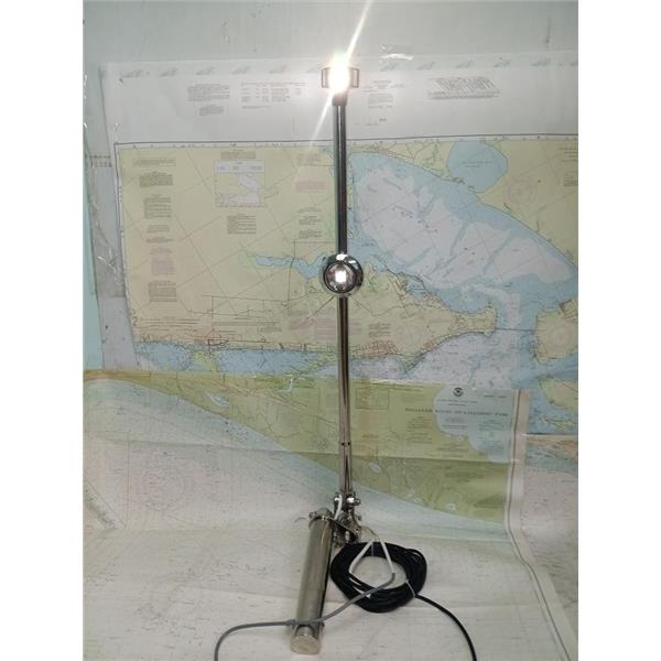 Boaters' Resale Shop of TX 2405 2774.34 FOLDING (12V) 34" ANCHOR/MAST NAV LIGHT ASSEMBLY * MOUNTING BRACKET BY D. LILLY COMPANY * 7800 SERIES USCG 3NM A-16 * TWO CABLES: APPROX. 20 FEET, & 2 FEET SEE ALL 6 PHOTOS * SOLD IN CONDITION PICTURED * ITEM WAS PREOWNED, USED, IS IN FAIRLY GOOD PHYSICAL CONDITION AND APPEARS TO BE OPERATING PROPERLY, ALL LIGHTS WORK AND ASSEMBLY FOLDS UP AND DOWN BUT HAS NOT BEEN TESTED FURTHER