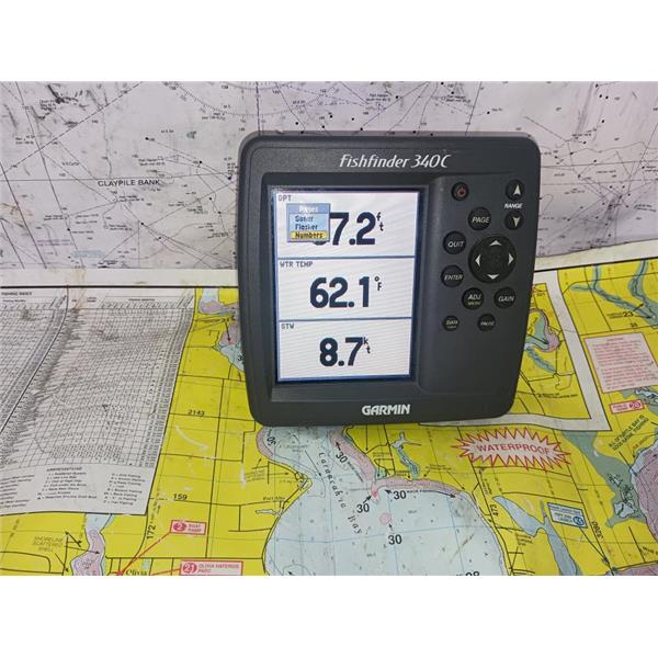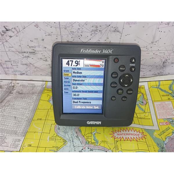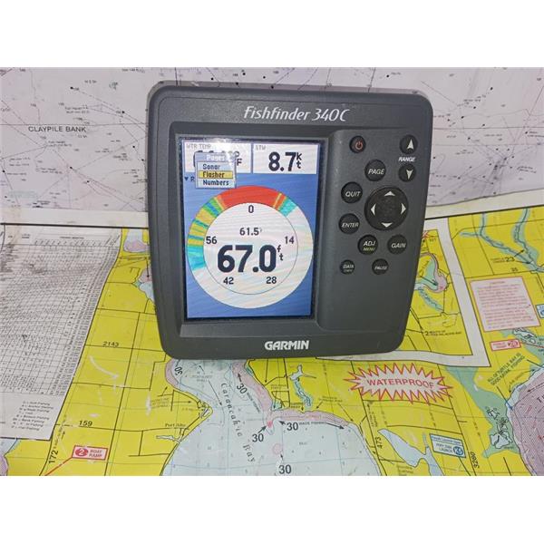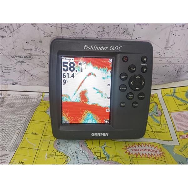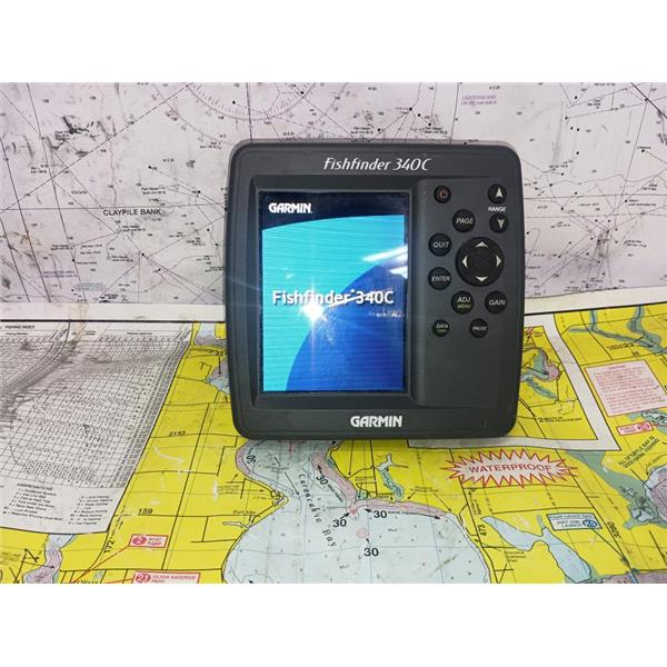 Boaters' Resale Shop of TX 2509 1306.07 GARMIN FISHFINDER 340C DISPLAY ONLY * TRANSDUCER & CABLES NOT INCLUDED(POWER CABLE FOR TESTING ONLY) * SOME PHOTOS ARE OF SIMULATION MODE * SEE ALL 6 PHOTOS & DETAILS * SOLD IN CONDITION PICTURED * ITEM WAS PREOWNED, USED, IS IN FAIRLY GOOD PHYSICAL CONDITION AND APPEARS TO BE OPERATING PROPERLY, POWERS UP AND CONTROLS WORK BUT HAS NOT BEEN TESTED FURTHER