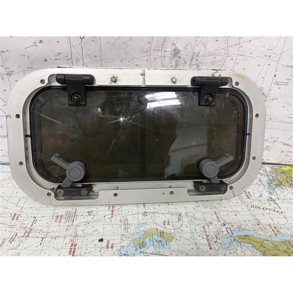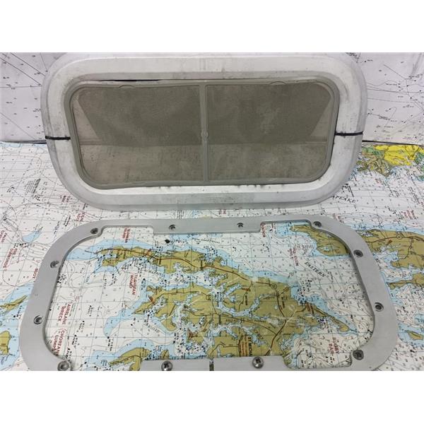 Boaters' Resale Shop of TX 2510 1106.04 LEWMAR #1 OPENING PORT, TRIM & SCREEN * MOUNTING HARDWARE NOT INCLUDED * SEE ALL 5 PHOTOS & DETAILS * SOLD IN CONDITION PICTURED * ITEM WAS PREOWNED, USED, SHOWS TYPICAL SIGNS OF WEAR FROM USE AND WEATHER (MINOR STAINS & CORROSION) BUT IS IN FAIR NAUTICAL PHYSICAL CONDITION AND APPEARS TO BE OPERATING PROPERLY BUT HAS NOT BEEN TESTED FURTHER