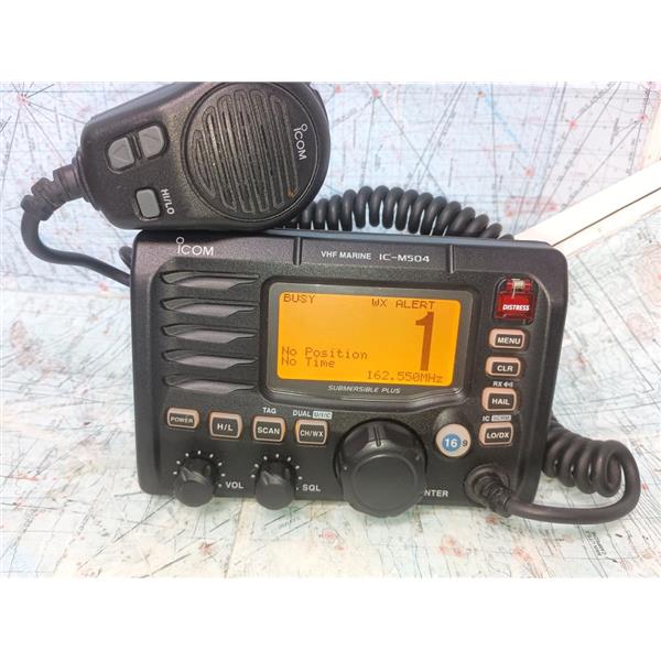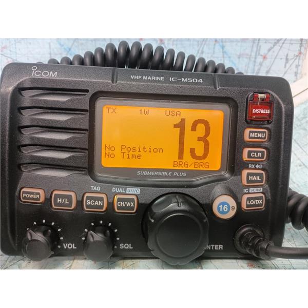 Boaters’ Resale Shop of TX 2601 2401.02 ICOM IC-M504 MARINE VHF RADIO w MIC ONLY * SEE ALL 6 PHOTOS & DETAILS * SOLD AS PICTURED * REMOTE MIC NOT INCLUDED (FOR TESTING ONLY) * ITEM WAS PREOWNED, USED, IN GREAT PHYSICAL CONDITION AND APPEARS TO BE OPERATING PROPERLY, POWERS UP, CONTROLS WORK, REMOTE MICROPHONE CIRCUIT TESTED GOOD, RECEIVES NOAA WEATHER AUDIO AND TRANSMITS WHEN MIC IS KEYED BUT HAS NOT BEEN TESTED FURTHER