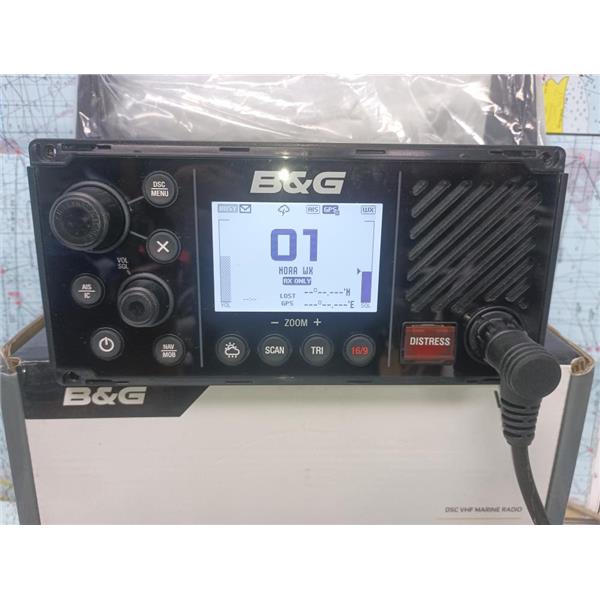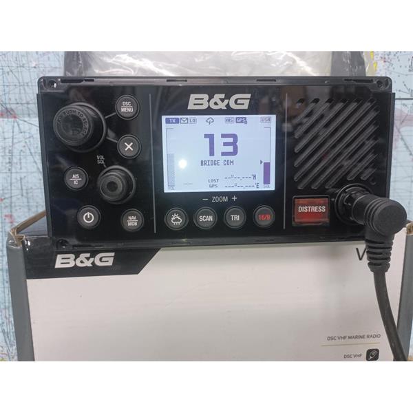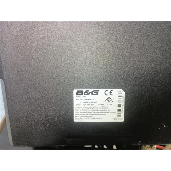 Boaters' Resale Shop of TX 2601 2401.04 B&G V60 VHF RADIO w GPS & AIS RECEIVER * PN: 000-14471-001 B&G MARINE DSC VHF RADIO with NMEA 2000, INTERNAL GPS & AIS RECEIVER * SEE ALL 8 PHOTOS & DETAILS * SOLD AS PICTURED * MICROPHONE'S PLASTIC INPUT PLUG'S OUTER RING ON THE FRONT OF THE BASE UNIT IS DAMAGED BUT ALL 8 PINS ARE UNDAMAGED AND DOES NOT AFFECT THE OPERATION OF THE MIC OR RADIO(SEE SECOND PHOTO) PLUS SINCE THE MICROPHONE CAN BE PLUGGED INTO THE FRONT OR BACK OF THE BASE UNIT, THERE IS ALWAYS THAT OPTION. ITEM WAS PREOWNED, IN ORIGINAL BOX & PACKING, HAS SOME SLIGHT DAMAGED PLASTIC BUT IS IN GREAT PHYSICAL CONDITION AND APPEARS TO HAVE BEEN DAMAGED IN THE BOX OR DURING INSTALLATION. UNIT POWERS UP, CONTROLS WORK, RECEIVES NOAA WEATHER AUDIO, RECEIVES AND TRANSMITS WHEN MIC IS KEYED BUT HAS NOT BEEN TESTED FURTHER