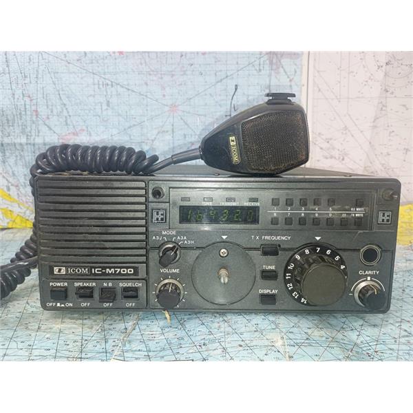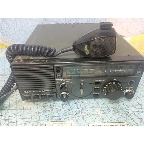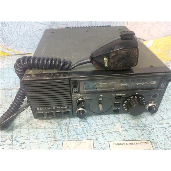 Boaters’ Resale Shop of TX ICOM IC-M700 SSB HF RADIOTELEPHONE with MIC & POWER CABLE ONLY * SEE ALL 5 PHOTOS * SOLD AS PICTURED * ITEM WAS PREOWNED, USED, IN FAIR PHYSICAL CONDITION AND APPEARS TO BE OPERATING PROPERLY, POWERS UP, CONTROLS WORK AND HAS AUDIO OUTPUT BUT HAS NOT BEEN TESTED FURTHER