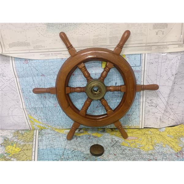 Boaters' Resale Shop of TX 2602 0707.02 WOODEN 23" SHIP'S WHEEL FOR 1" SHAFT * COULD BE USED AS A FUNCTIONING SHIP'S STEERING WHEEL OR AS NAUTICAL DECOR * SEE ALL 6 PHOTOS & DETAILS * SOLD IN CONDITION PICTURED * ITEM WAS PREOWNED, USED, IS IN FAIRLY GOOD PHYSICAL CONDITION AND APPEARS TO BE OPERATING PROPERLY BUT HAS NOT BEEN TESTED FURTHER