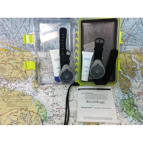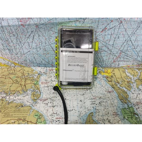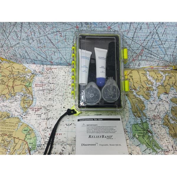 The ReliefBand® "Discoverer" Kit, which includes the disposable model RB-DL, is an FDA-cleared, wearable device designed to treat nausea and vomiting using neuromodulation technology. The RB-DL model specifically features a non-user-replaceable battery, making it a "disposable" or limited-use item compared to the reusable models