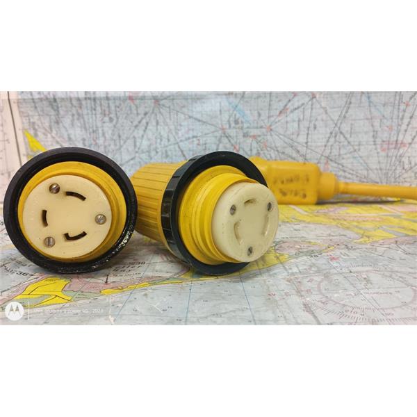 Boat side female connector attaches to boat inlet or cordset.
