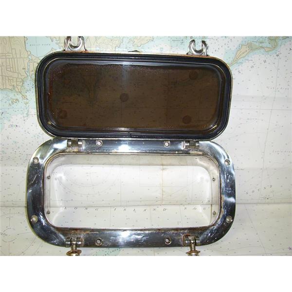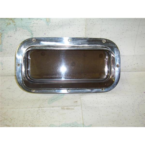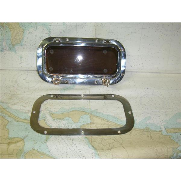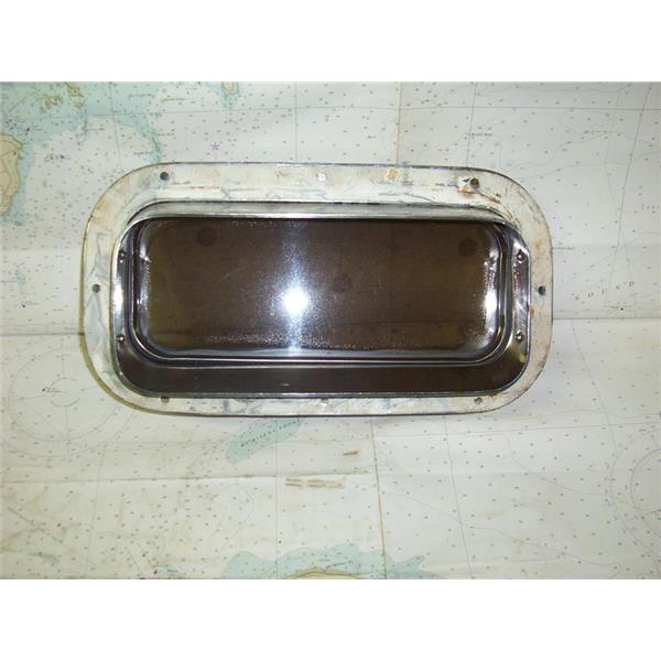 Boaters’ Resale Shop of TX1809 2424.21 STAINLESS STEEL 5.25" x 12.25" CUT-OUT TINTED PORTLIGHT WITH TRIM RING ONLY * APPROX. OVERALL DIMENSIONS: 4-1/4" D x 8" H x 14-1/4" W * ITEM WAS PRE-OWNED, USED, WEATHERED BUT IN FAIR PHYSICAL CONDITION, APPEARS TO BE OPERATING PROPERLY BUT UNABLE TO TEST FURTHER