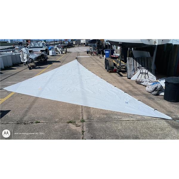 Minor Stains * Generally clean and cloth has life in it, no significant damage or chafe * Coastal Cruising or Club Racing Sail * Rope Luff with #2 Hanks * Yellow Sail Bag Included
