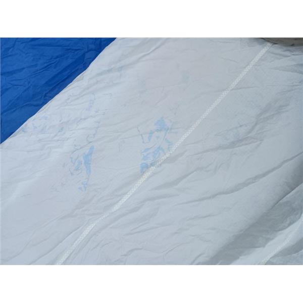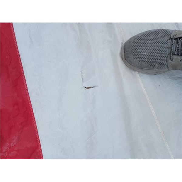 Sock Not Included * Tri-Radial Panel Layout * Small Tear in Foot (Taped) * Minor Stains(Wet Bleeding) * Generally clean and cloth has life in it, no significant damage or chafe * Coastal Cruising or Club Racing Sail * Blue Turtle Bag Included * #11855 in White