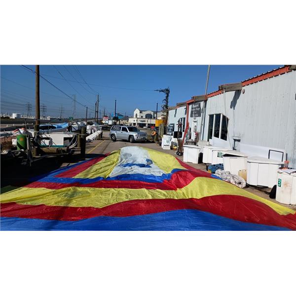 Cloth weight: .75 oz Nylon* Total weight of sail:15# * Photo date:12/9/25 * Loc: K-2