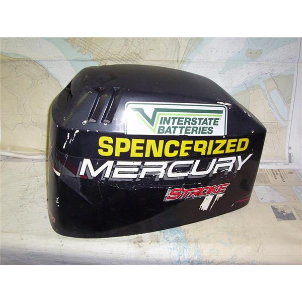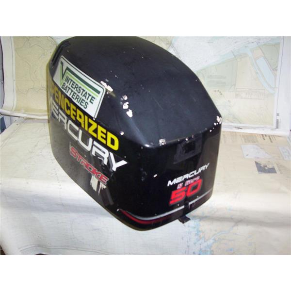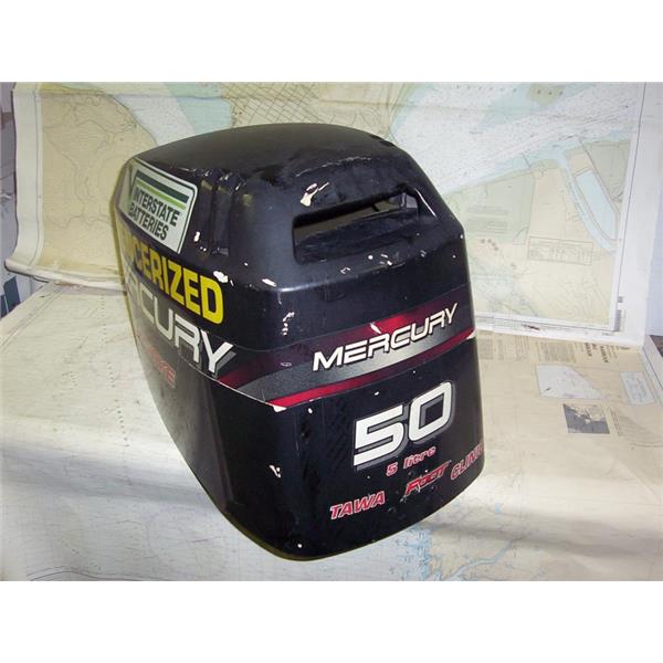 Boaters Resale Shop Of TX 1207 0601.18 MERCURY 50 HP OUTBOARD MOTOR COWLING * 5 LITRES * FOUR STROKE * APPROX. OVERALL DIMENSIONS: 15" WIDE (AT THE WIDEST) x 16" DEPTH x 25-1/2" LENGTH * SEE ALL PHOTOS * SOLD AS PICTURED * ITEM WAS PRE-OWNED, USED, WEATHERED BUT IN FAIR PHYSICAL CONDITION AND APPEARS TO BE OPERATING PROPERLY