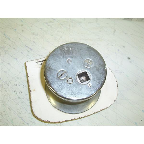 Boaters’ Resale Shop Of Tx 1304 0105.47 VINTAGE CHROME WINCH WITH SQUARE SOCKET * SINGLE SPEED * APPROX. WINCH DIMENSIONS: BASE DIAMETER: 6" * TOP DIAMETER: 4-7/8" * HEIGHT: 5" * 12 HOLE MOUNTING PATTERN * ITEM WAS PRE-OWNED, USED, WEATHERED BUT IN WORKING CONDITON