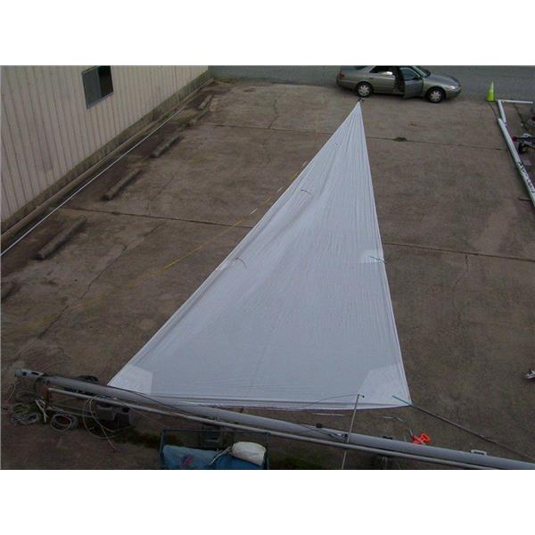 Boaters Resale Shop of Tx 13080425.91 jib w/wire 54-0 luff Northwind Sailmakers Luff: 54-0 Foot: 14-6 Leach: 51-4 LP: Cloth weight:unknown,total weight of sail is 12 lbs Colors: white Condition: 2.5,Very clean sail,teltales in place,jib bag is attached at tack,its a light air jib Generally clean and crisp, no significant damage or chafe issues