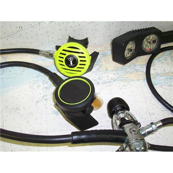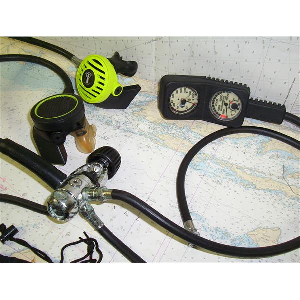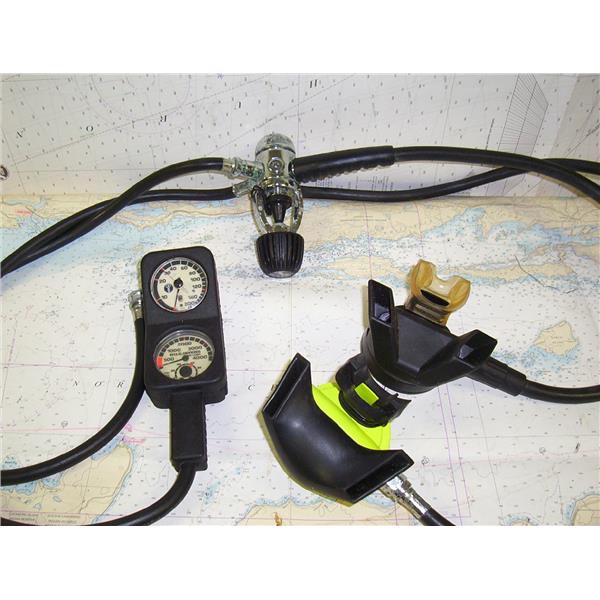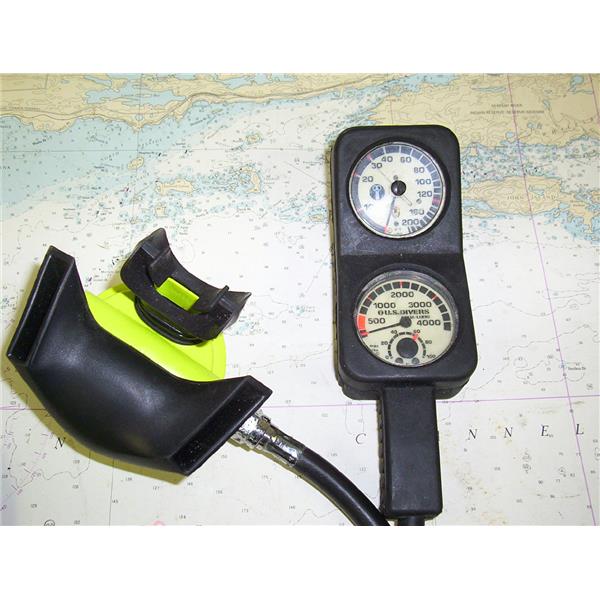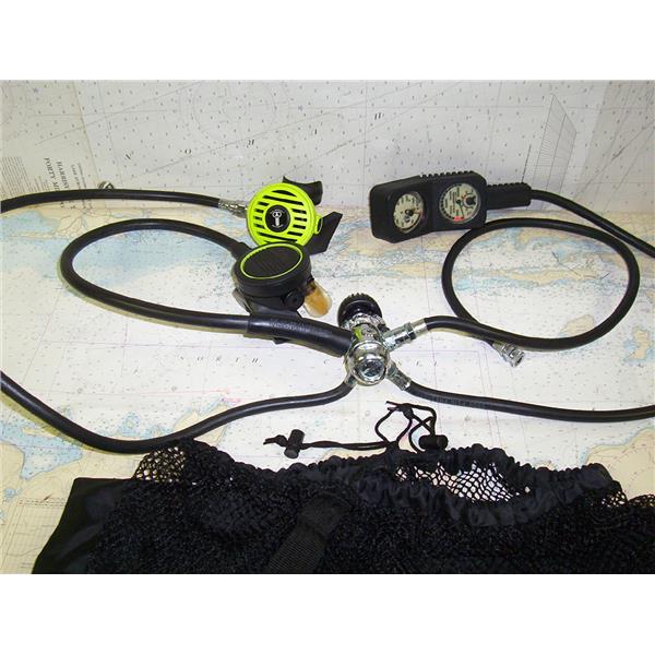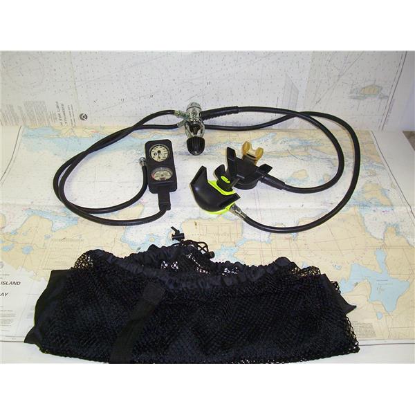 U.S. DIVERS OCTUPUS WITH DUAL MOUTHPIECES, GUAGE & BAG * ITEM WAS PRE-OWNED, USED, WEATHERED & HAS NOT BEEN TESTED