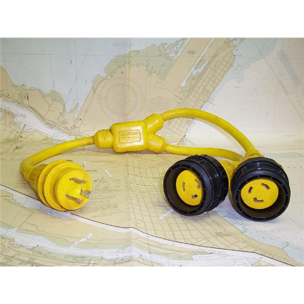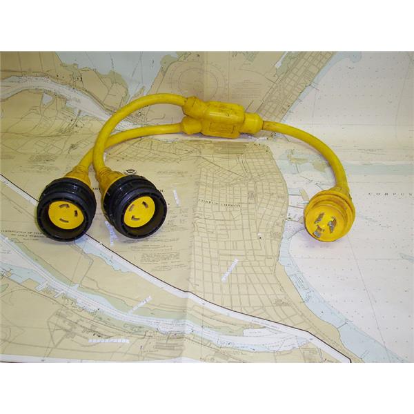 Boaters’ Resale Shop Of Tx 1511 0770.07 MARINCO 157AY 30 AMP 125 VOLT Y ADAPTOR * Y-ADAPTER 30A MALE TO 2-30A FEMALES * Y Adapter with Two 30A 125V Locking w/ Sealing Collar System Female Connectors and a 30A 125V Locking Male Plug * ITEM WAS PRE-OWNED, USED, WEATHERED, PASSES CONTINUITY TEST BUT HAS NOT BEEN TESTED FURTHER