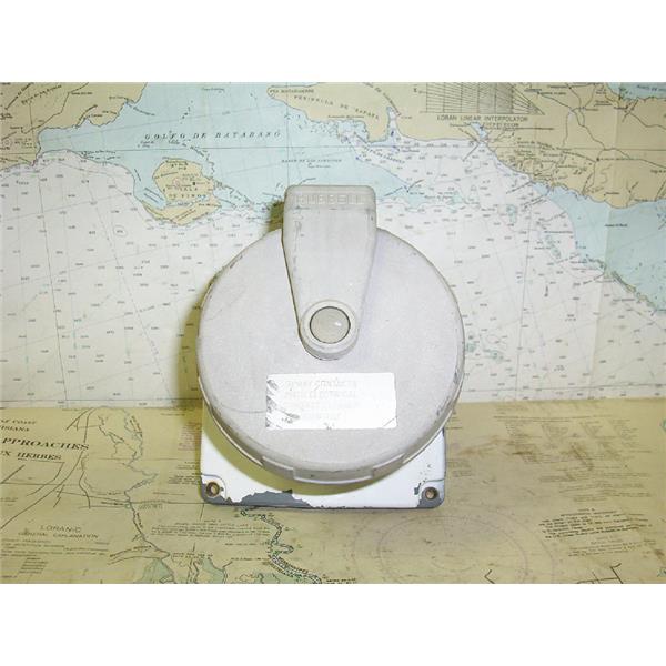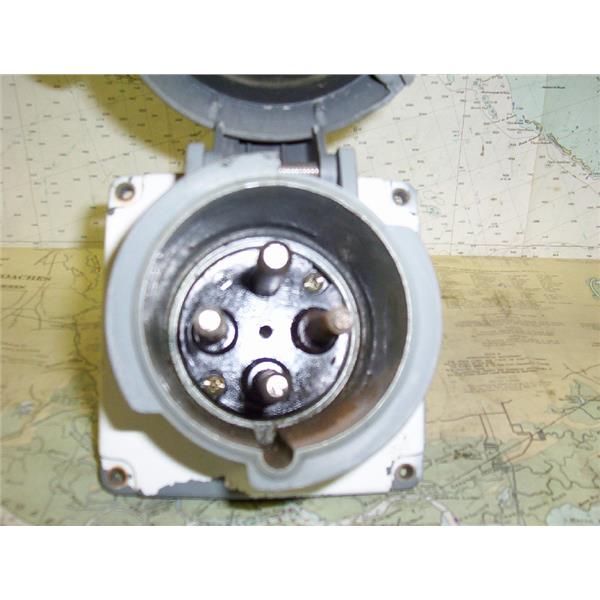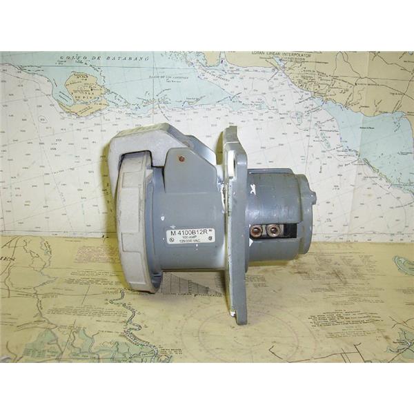 Boaters’ Resale Shop of Tx 1606 0741.55 HUBBELL M 4100B12R 100 AMP 125/250 VOLT AC OULET PLUG WITH SPRING LOADED CAP *ITEM WAS PRE-OWNED, USED, WEATHERED AND HAS NOT BEEN TESTED