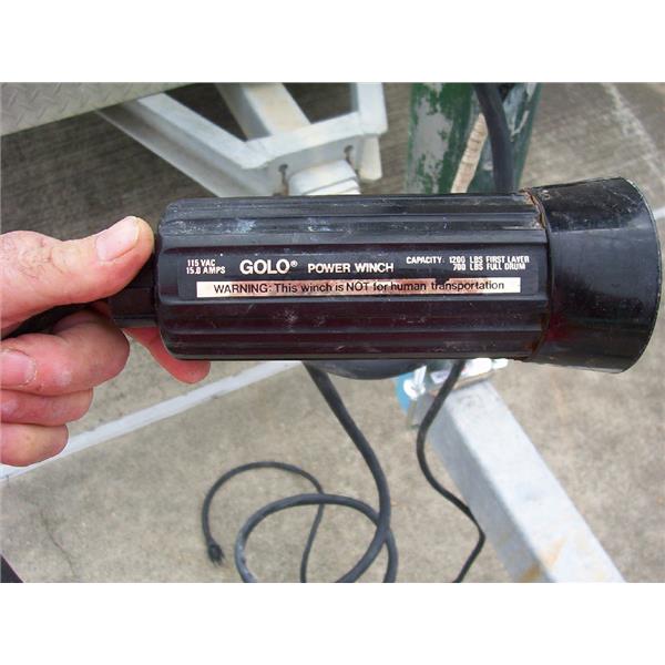 Boaters’ Resale Shop of TX 1701 1524.01 MARQUIPT 9.5 FOOT SEA DAVIT * 110 VOLTS AC GOLO POWER WINCH LIFTING CAPACITY 1200 LBS. FIRST LAYER & 700 LBS. FULL DRUM * APPROX. HEIGHT: 30" (AS PICTURED) * MANUAL ROTATING AND TILT * APPROX. LENGTH: 9'6" * FREIGHT SHIPPING ONLY * ITEM WAS PRE-OWNED, USED, WEATHERED BUT IN FAIR PHYSICAL CONDITION, POWER WINCH WORKS BUT HAS NOT BEEN TESTED FURTHER
