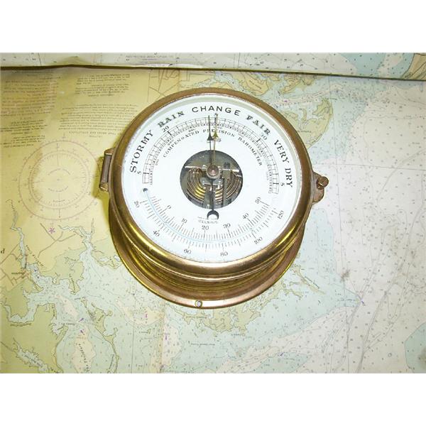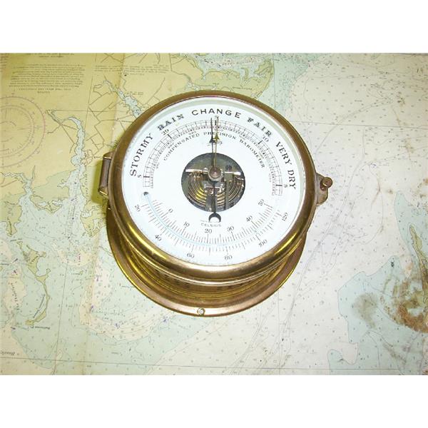 Boaters’ Resale Shop of TX 1707 0121.02 SCHATZ 5" SHIPS BAROMETER & TEMPERATURE * HOUSING HAS SEVERAL CRACKS * SEE ALL PHOTOS * SOLD AS PICTURED * ITEM WAS PRE-OWNED, USED, HOUSING HAS SEVERAL CRACKS BUT IS IN FAIR PHYSICAL CONDITION BUT HAS NOT BEEN TESTED