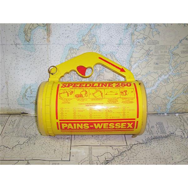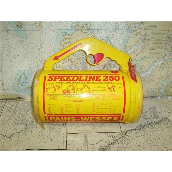 Boaters’ Resale Shop of TX 1707 1242.25 PAINS-WESSEX SPEEDLINE 250 LINETHROWER * EXPIRED * RECOMMENDED REPLACE LINE CONTAINER BY END OF 2015 * ROCKET PROPELLED LINETHROWER * ITEM WAS PRE-OWNED, USED, WEATHERED BUT IN FAIR PHYSICAL CONDITION AND HAS NOT BEEN TESTED