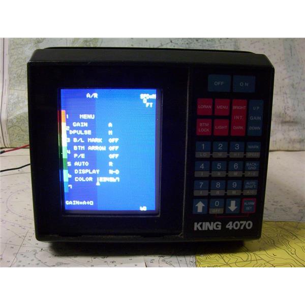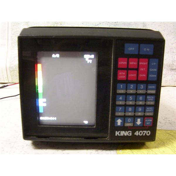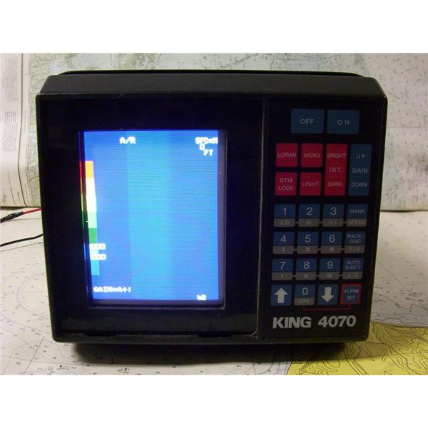 Boaters’ Resale Shop of TX 1806 0257.04 KING 4070 FISHFINDER COLOR CRT VIDEO SOUNDER DISPLAY ONLY * VOLTAGE: 11-40 VOLTS DC * NO CABLES ARE INCLUDED * ITEM WAS PRE-OWNED, USED, VERY OLD BUT IN FAIR PHYSICAL CONDITION, POWERS UP, CONTROLS APPEAR TO WORK BUT UNABLE TO TEST ITEM FURTHER