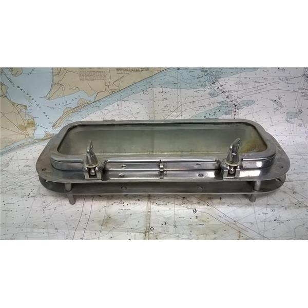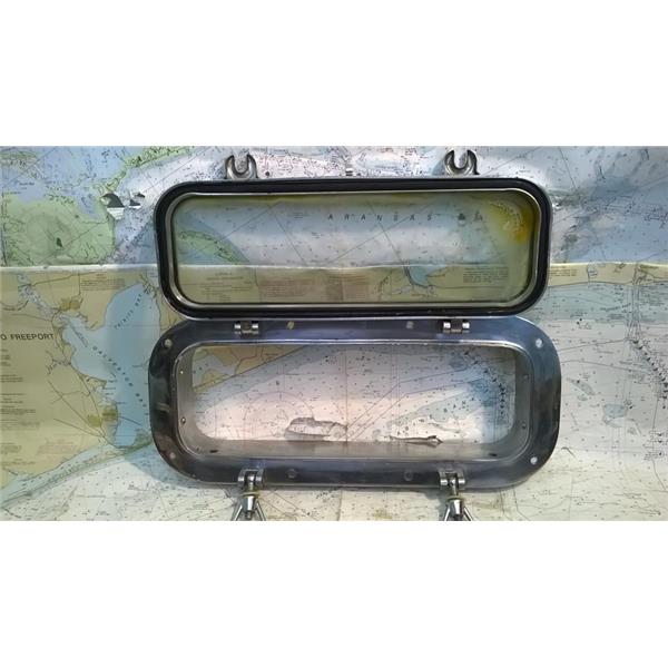 Boaters' Resale Shop of TX 1809 2424.05 SS OPENING 7.5" x 17.5" PORT LIGHT w TRIM * STAINLESS STEEL OPENING PORTLIGHT with TRIM RING & SELF-DRAINING * SEE ALL 6 PHOTOS * SOLD IN CONDITION PICTURED * ITEM WAS PREOWNED, USED, SOME OF THE ADHESIVE HAS LEAKED OUT ONTO THE VIEWING WINDOW BUT THE ASSEMBLY IS IN FAIRLY GOOD PHYSICAL CONDITION AND APPEARS TO BE OPERATING PROPERLY BUT HAS NOT BEEN TESTED FURTHER