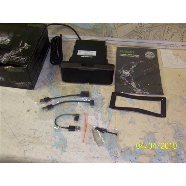 Boaters’ Resale Shop of TX 1901 1227.02 FUSION MARINE MS-UNIDOCK KIT * COMPATIBLE WITH: MS-AV700, MS-AV700i, MS-IP700i, MS-RA205 * POTECT, CHARGE AND PLAY APPLE AND ANDROID * ITEM WAS PRE-OWNED, IN ORIGINAL BOX AND PACKING, APPEARS TO HAVE NEVER BEEN INSTALLED, IN GOOD PHYSICAL CONDITION BUT HAS NOT BEEN TESTED