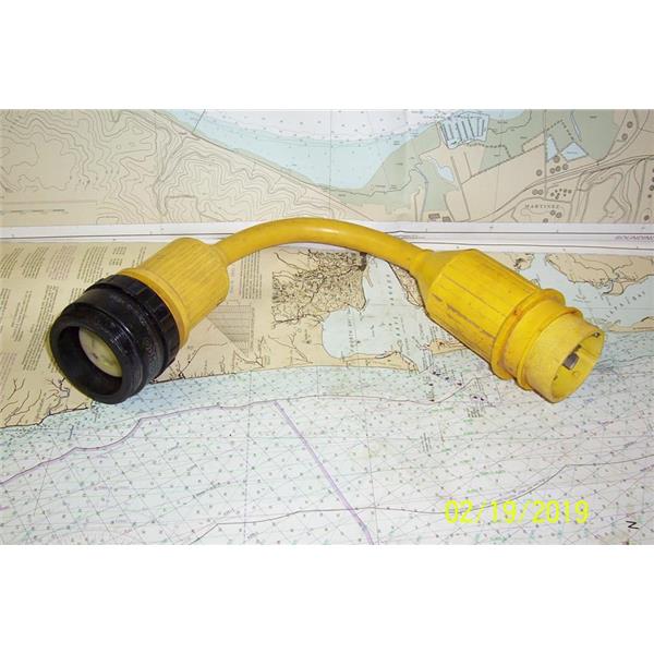 Boaters’ Resale Shop of TX 1902 0427.01 MARINCO 110A PIGTAL ADAPTER * 50 AMP 125 VOLT MALE TO 30 AMP 125 VOLT FEMALE * 30A 125V Locking with Sealing Collar System Female Connector and a 50A 125V Locking Male Plug *