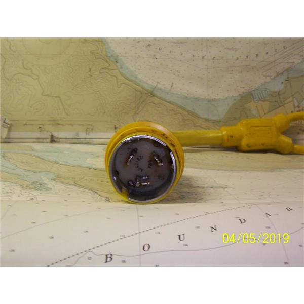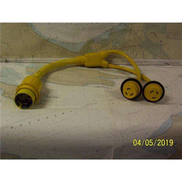 Boaters’ Resale Shop of TX 1903 2751.01 MARINCO MODEL 153AY 50 AMP 125/250 VOLTS AC TO TWO 30 AMP 125 VOLT AC SHOREPOWER Y-ADAPTOR * SEE ALL PHOTOS * SOLD AS PICTURED *ITEM WAS PRE-OWNED, USED, WEATHERED BUT IN FAIR PHYSICAL CONDITION, APPEARS TO BE OPERATING PROPERLY, PASSES CONTINUITY TEST BUT UNABLE TO TEST FURTHER * Y Adapter, 50A 125/250V Male To (2) 30A 125V Females Part # 153AY * "Y" adapters let you split one dock side receptacle between the two boat inlets of similar or different power configurations. They are fully molded and equipped with the Marinco unique sealing collar and covers (where indicated) for use in wet locations.
