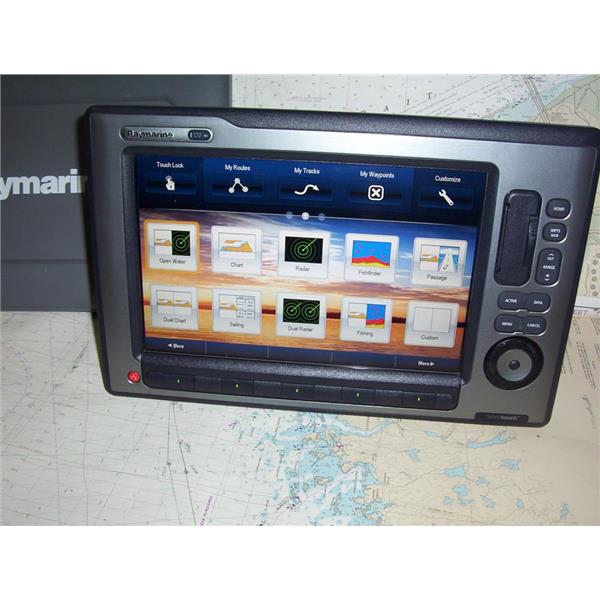 Boaters Resale Shop of TX 1907 0745.15 RAYMARINE E120W HYBRIDTOUCH MULTIFUNCTION NAVIGATION DISPLAY E62223 WITH SUNCOVER ONLY * NO CABLES INCLUDED * ITEM WAS PRE-OWNED, USED, IN GOOD PHYSICAL CONDITION, APPEARS TO BE OPERATING PROPERLY, UNIT POWERS UP, CONTROLS WORK BUT UNABLE TO TEST FURTHER