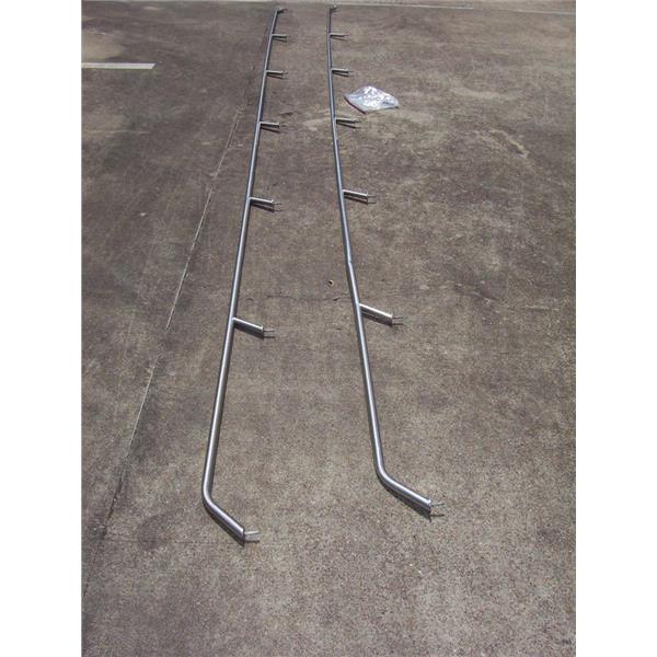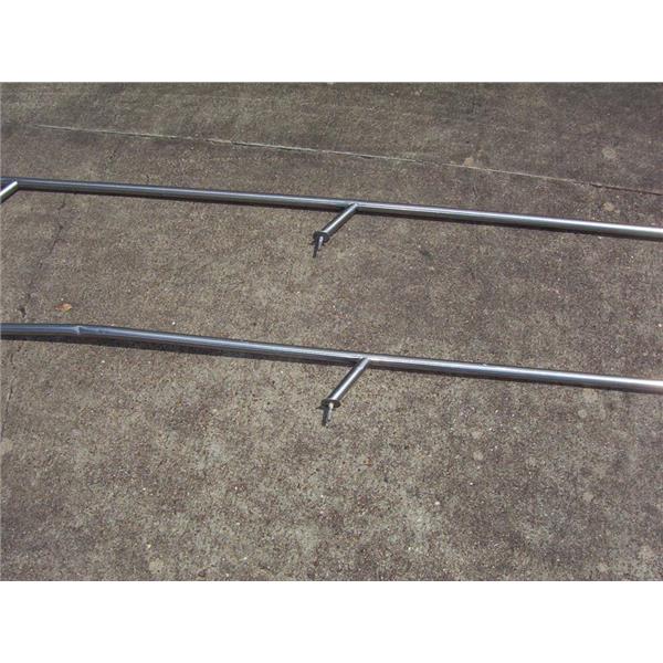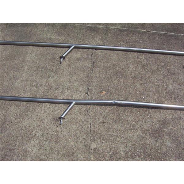 Boaters’ Resale Shop of TX 1908 2474.01 PAIR OF STAINLESS STEEL 15'11" RAILINGS & MOUNTING HARDWARE OFF A 22 FOOT BLUE WAVE * APPROX. OVERALL LENGTH: 15'11" * 1" TUBE DIAMETER * SEE ALL PHOTOS * SOLD AS PICTURED * ITEM WAS PRE-OWNED, USED, WEATHERED, ONE IS BENT BUT IN FAIR PHYSICAL CONDITION AND APPEARS TO BE OPERATING PROPERLY
