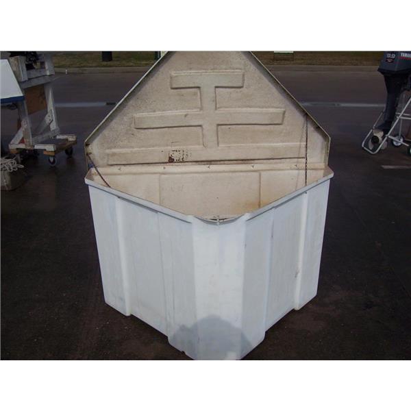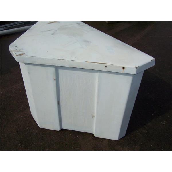 TRIANGULAR FIBERGLASS BOX APPROX. OVERALL DIMENSIONS: 30" DEPTH x 30" HEIGHT x 50" WIDTH *