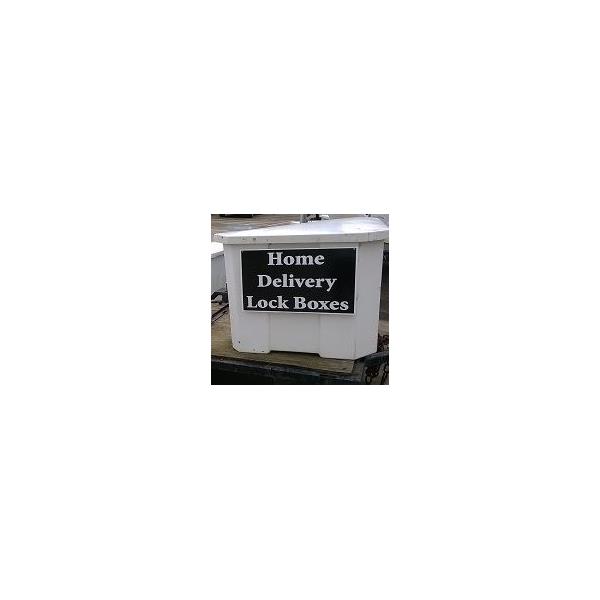A good looking, strong, secure, waterproof lockable hinged lid container for items delivered to your home.