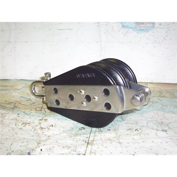 Boaters’ Resale Shop of TX 20012.83 VIADANA 3" DOUBLE BLOCK WITH BECKET * MAX LINE SIZE: 9/16" * OVERALL HEIGHT: 6-1/4" * BREAKING LOAD: 23 Kg (5070) * MAX. WORKING LOAD: 800 Kg. (1763) * ITEM IS NEW, HAS NEVER BEEN INSTALLED, IS IN GOOD PHYSICAL CONDITION AND APPEARS TO BE OPERATING PROPERLY