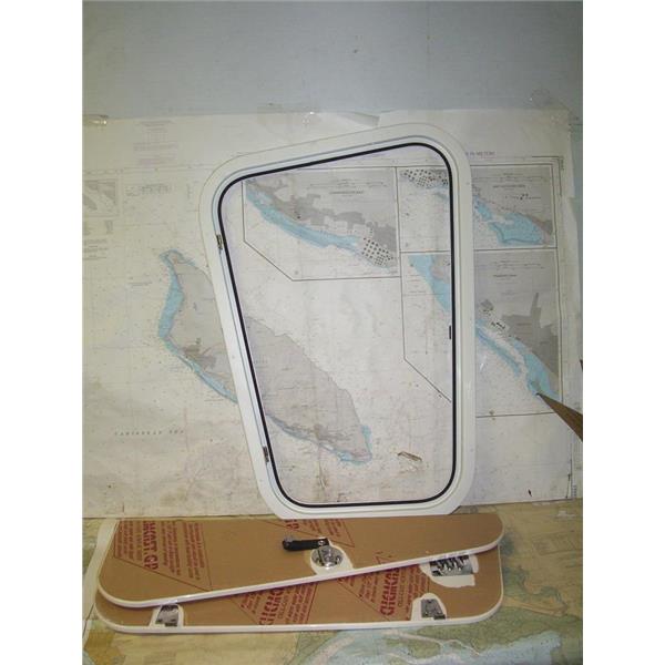 Boaters’ Resale Shop of TX 2002 0454.25 CAPE DORY CENTER COCKPIT DOOR ASSEMBLY * HINGED WITH TRIM, HARDWARE AND KEYS * APPROX. OVERALL DIMENSIONS: 1" DEPTH x 23" WIDTH (AT THE LARGER) x 18" WIDTH (AT THE SMALLER) x 32" HEIGHT SEE ALL PHOTOS * SOLD AS PICTURED * ITEM WAS PRE-OWNED, IN ORIGINAL PACKING, APPEARS TO HAVE NEVER BEEN INSTALLED, IN GOOD PHYSICAL CONDITION BUT HAS NOT BEEN TESTED