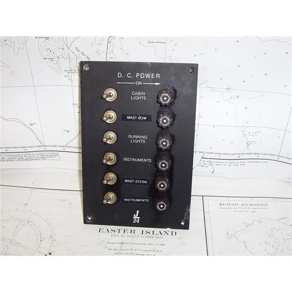 Boaters’ Resale Shop of TX 2101 4122.74 BASS J-24 DC VOLTAGE 6 BREAKER PANEL * APPROX. OVERALL DIMENSIONS: 2" D x 5-1/4" W x 8" H * SEE ALL 3 PHOTOS * SOLD AS PICTURED * ITEMS WERE PRE-OWNED, USED, IN FAIR PHYSICAL CONDITION, APPEAR TO BE OPERATING PROPERLY BUT UNABLE TO TEST