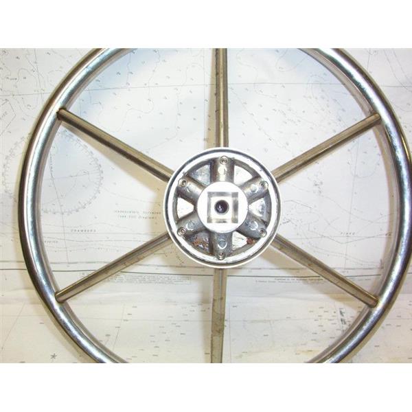 Boaters’ Resale Shop of TX 2102 2141.15 STAINLESS STEEL 14" STEERING WHEEL WITH 7/8" SQUARE AND REMOVABLE CENTER CAP * 6 SPOKES * SEE ALL 4 PHOTOS * SOLD AS PICTURED * ITEM WAS PRE-OWNED, USED, IN FAIR PHYSICAL CONDITION AND APPEARS TO BE OPERATING PROPERLY