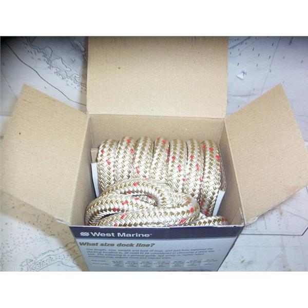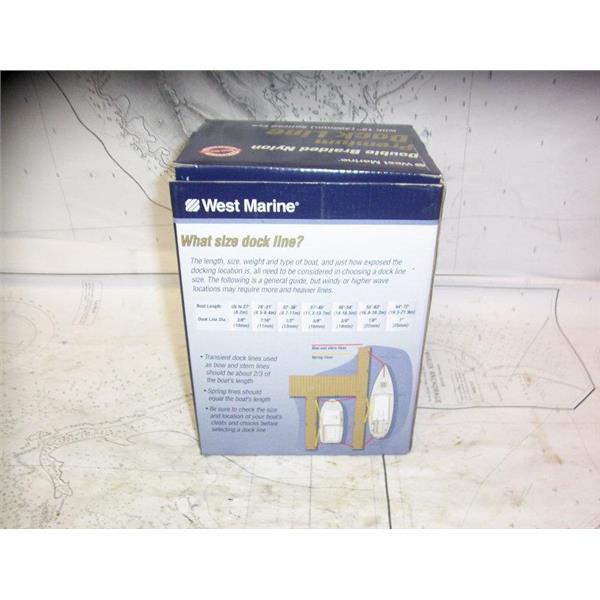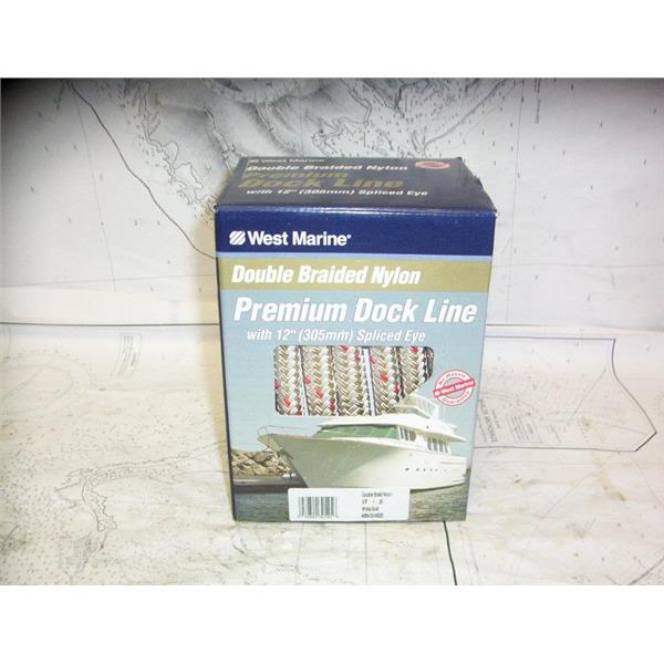 Boaters’ Resale Shop of TX 2103 2155.07 WEST MARINE PREMIUM DOCK LINE 5/8" x 25FT * 4069-20-00025 * DOUBLE BRAIDED NYLON WITH 12" SPLICED EYE * BOAT LENGTH: 37 TO 45 FEET * SEE ALL 3 PHOTOS * ITEM WAS PRE-OWNED, IN ORIGINAL BOX AND PACKING, APPEARS TO HAVE NEVER BEEN DEPLOYED, IN GOOD PHYSICAL CONDITION AND APPEARS TO BE WORKING PROPERLY