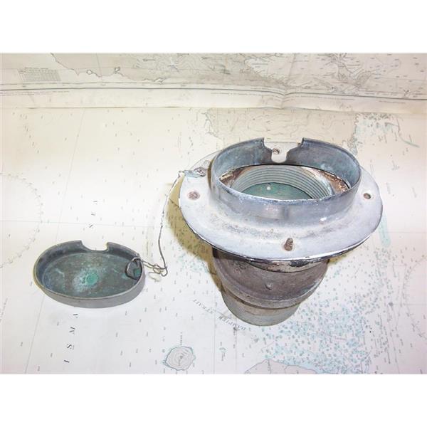 Boaters’ Resale Shop of TX 2104 2541.55 BRONZE 3" HAWSPIPE with CHROME PLATED LID * APPROX. OVERALL HEIGHT: 8-1/4" * APPROX. ABOVE DECK DIMENSIONS: 2" H x 4-1/2" D x 6-1/2" L * THREADED PIPE BOTTOM INSIDE DIAMETER: 3" * SEE ALL 6 PHOTOS * SOLD AS PICTURED * ITEM WAS PRE-OWNED, USED, HAS ONE SCREW BROKEN ON LID ASSEMBLY BUT IS IN FAIR PHYSICAL CONDITION AND APPEARS TO BE OPERATING PROPERLY BUT HAS NOT BEEN TESTED FURTHER