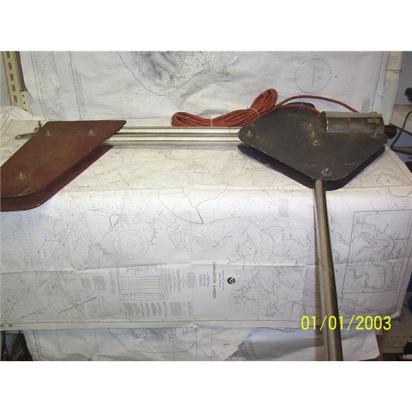 Boaters’ Resale Shop of TX 2106 2127.01 MARINE WIND GENERATOR HUB/VANE ASSEMBLY ONLY * 12 VOLTS DC * APPROX. OVERALL DIMENSIONS: 4" T x 43" H x 46" L * BLADES NOT INCLUDED * SEE ALL 12 PHOTOS * SOLD AS PICTURED * ITEM WAS PRE-OWNED, USED, IN FAIR PHYSICAL CONDITION AND APPEARS TO BE OPERATING PROPERLY (PRODUCES DC VOLTAGE WHEN TURNED) BUT HAS NOT BEEN TESTED FURTHER