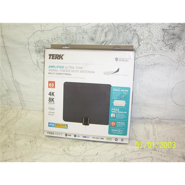 Boaters’ Resale Shop of TX 2106 2745.01 TERK AMPLIFIED HDTV ANTENNA THINTV3M * Ultra-Thin Signal Finder HD Antenna THINTV3M * MULTI-DIRECTIONAL * INCLUDED IN THE BOX: 12"x13" ANTENNA, 12 FT. COAXIAL CABLE ATTACHED TO ANTENNA & POWER CABLE with 110 VOLT ADAPTER * SEE ALL 5 PHOTOS * SOLD AS PICTURED * ITEM WAS PRE-OWNED, USED, IN ORIGINAL BOX AND PACKING, IN GOOD PHYSICAL CONDITION BUT HAS NOT BEEN TESTED