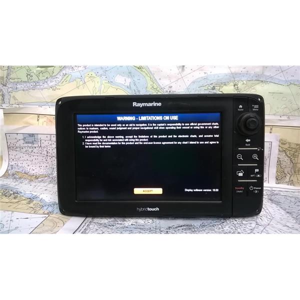Boaters’ Resale Shop of TX 2110 1557.05 RAYMARINE E95 HYBRID TOUCHSCREEN DISPLAY ONLY * RAYMARINE E95 HYBRID 9" TOUCHSCREEN with MISSING BEZEL & LOOSE KEYPAD * DISPLAY ONLY * SOFTWARE VERSION: 19.03 * SEE ALL 8 PHOTOS * SOLD AS PICTURED * ITEM WAS PRE-OWNED, USED, IS MISSING OUTER TRIM BEZEL AND KEYPAD IS LOOSE, BUT POWERS UP, TOUCHSCREEN & MANUAL CONTROLS WORK BUT HAS NOT BEEN TESTED FURTHER * DISPLAY ONLY (NOTHING ELSE IS INCLUDED)