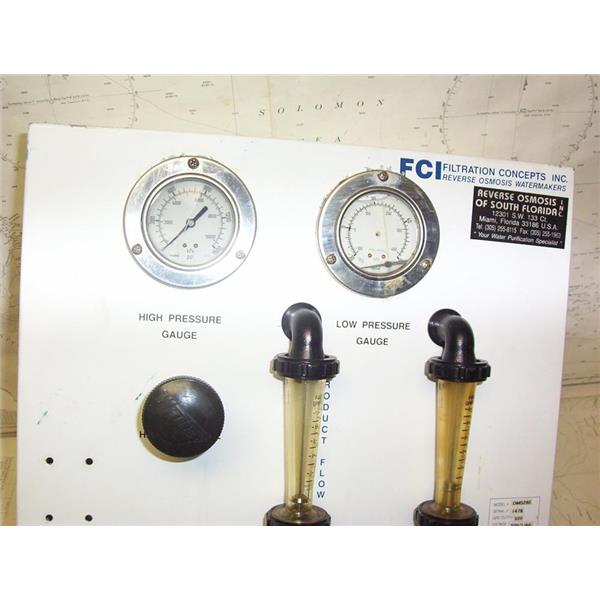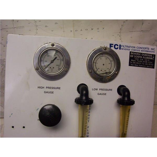 Boaters’ Resale Shop of TX 2111 2721.14 FCI WATERMAKER VALVE & GAUGE PANEL MODEL DM826E ONLY * MODEL: DM826E * VOLTAGE: 220/1/60 * APPROX. PANEL DIMENSIONS: 7" D x 13" H x 16" W * BOTH GAUGES ARE CRACKED * SEE ALL 5 PHOTOS * SOLD AS PICTURED * ITEM WAS PRE-OWNED, USED, IN FAIR PHYSICAL CONDITION BUT HAS NOT BEEN TESTED