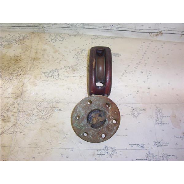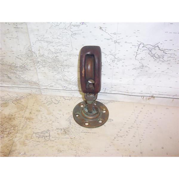 Boaters’ Resale Shop of TX 2201 0425.27 DECK MOUNT SWIVEL BLOCK FOR 1/2" LINE MAX * BRONZE & WOODEN SWIVEL DECK BLOCK * APPROX. OVERALL HEIGHT: 6-1/2" * APPROX. BRONZE BASE DIAMETER: 3-1/2" * SIX MOUNTING HOLE ARE 1-3/8" APART * SEE ALL 4 PHOTOS * SOLD AS PICTURED * ITEM WAS PRE-OWNED, USED, VINTAGE, IN FAIR PHYSICAL CONDITION AND APPEARS TO BE OPERATING PROPERLY BUT HAS NOT BEEN TESTED FURTHER