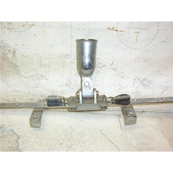 Boaters’ Resale Shop of TX 2201 4745.01 SPINNAKER POLE CAR ON 1.25" x 6' TRACK with HARKEN BLOCKS FOR WOODEN MAST * STAINLESS STEEL * APPROX. INSIDE POLE HOLDER DIAMETER: 2.25" * APPROX. OVERALL TRACK ASSEMBLY WIDTH: 7" * SEE ALL 3 PHOTOS * SOLD AS PICTURED * ITEM WAS PRE-OWNED, USED, ONE BLOCK IS DAMAGED BUT IS IN FAIR PHYSICAL CONDITION AND APPEARS TO BE OPERATING PROPERLY BUT HAS NOT BEEN TESTED FURTHER